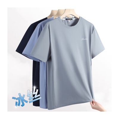 罗蒙(ROMON)冰丝感短袖T恤男士2024夏运动速干衣弹力透气打底衫男01BS灰色XL