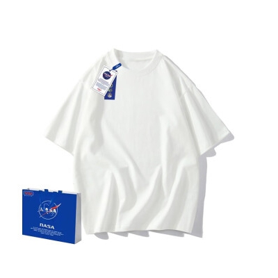NASA GISS重磅260g纯棉短袖t恤男纯色圆领厚实不透纯白打底衫男女体恤上衣 白色 M体重110-130斤
