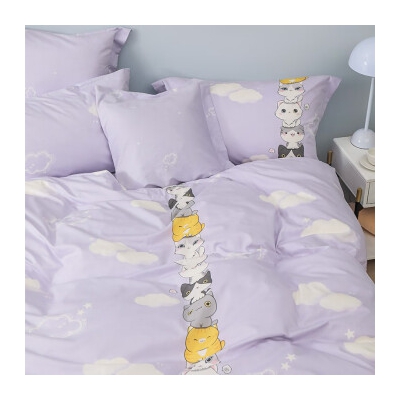 罗莱(LUOLAI) 家纺纯棉四件套件全棉床单被套被罩床上用品 叠喵喵-紫色 1.5米床(被套200x230cm)