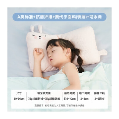 罗莱家纺罗莱儿童A类抗菌纤维成长萌趣枕头学生卡通枕芯 小兔子 30*50cm