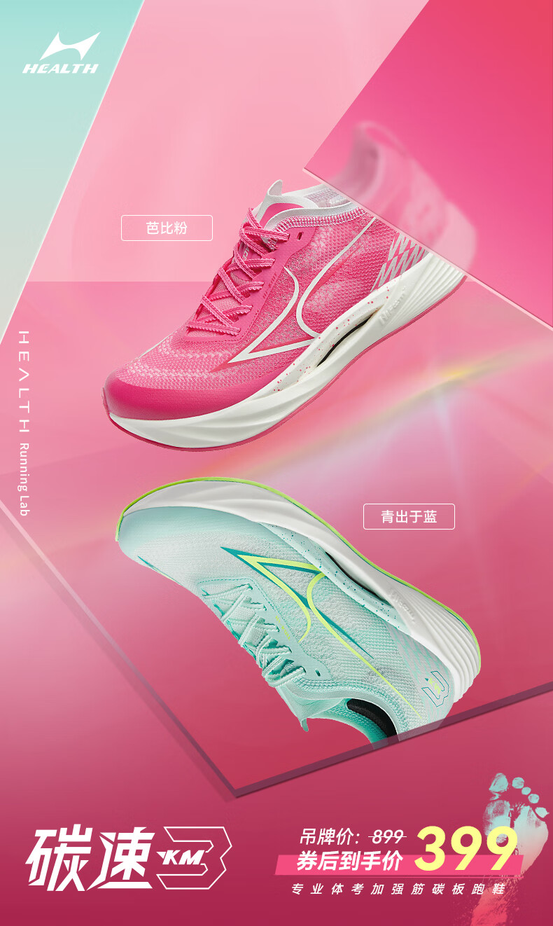 海尔斯KM3全掌碳板跑鞋学生中高考体育田径训练比赛专用竞速跑鞋 逐梦水青 42