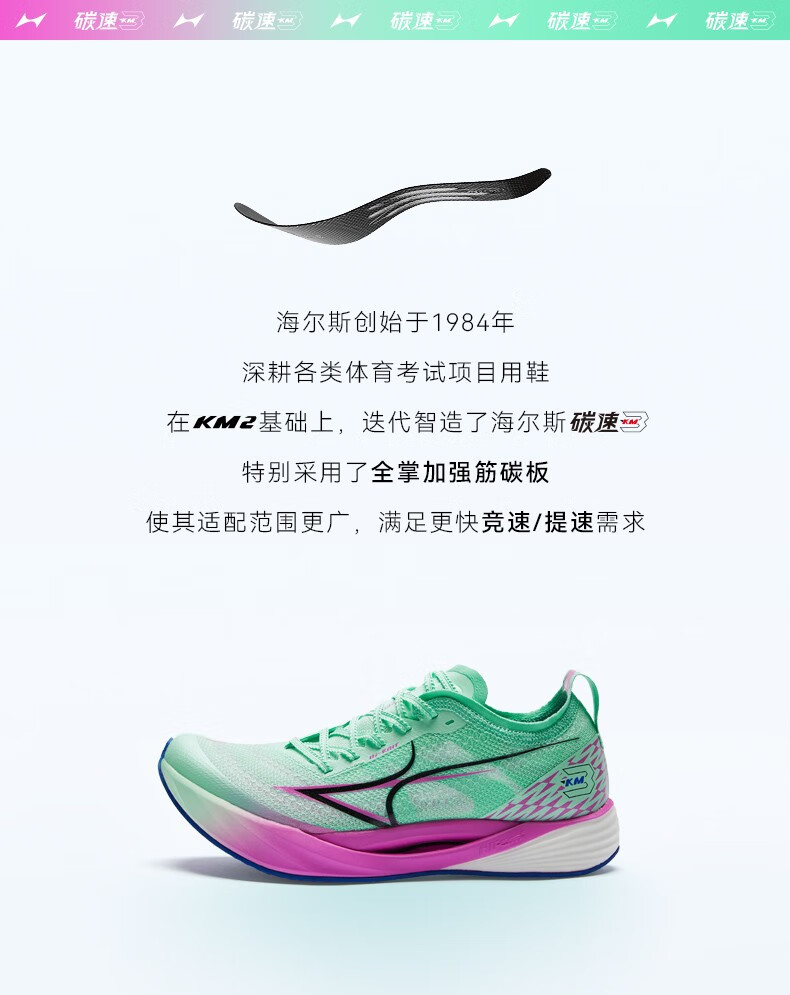 商品名称:海尔斯KM3全掌碳板跑鞋学生中高考体育田径训练比赛专用竞速跑鞋 逐梦水青 42
