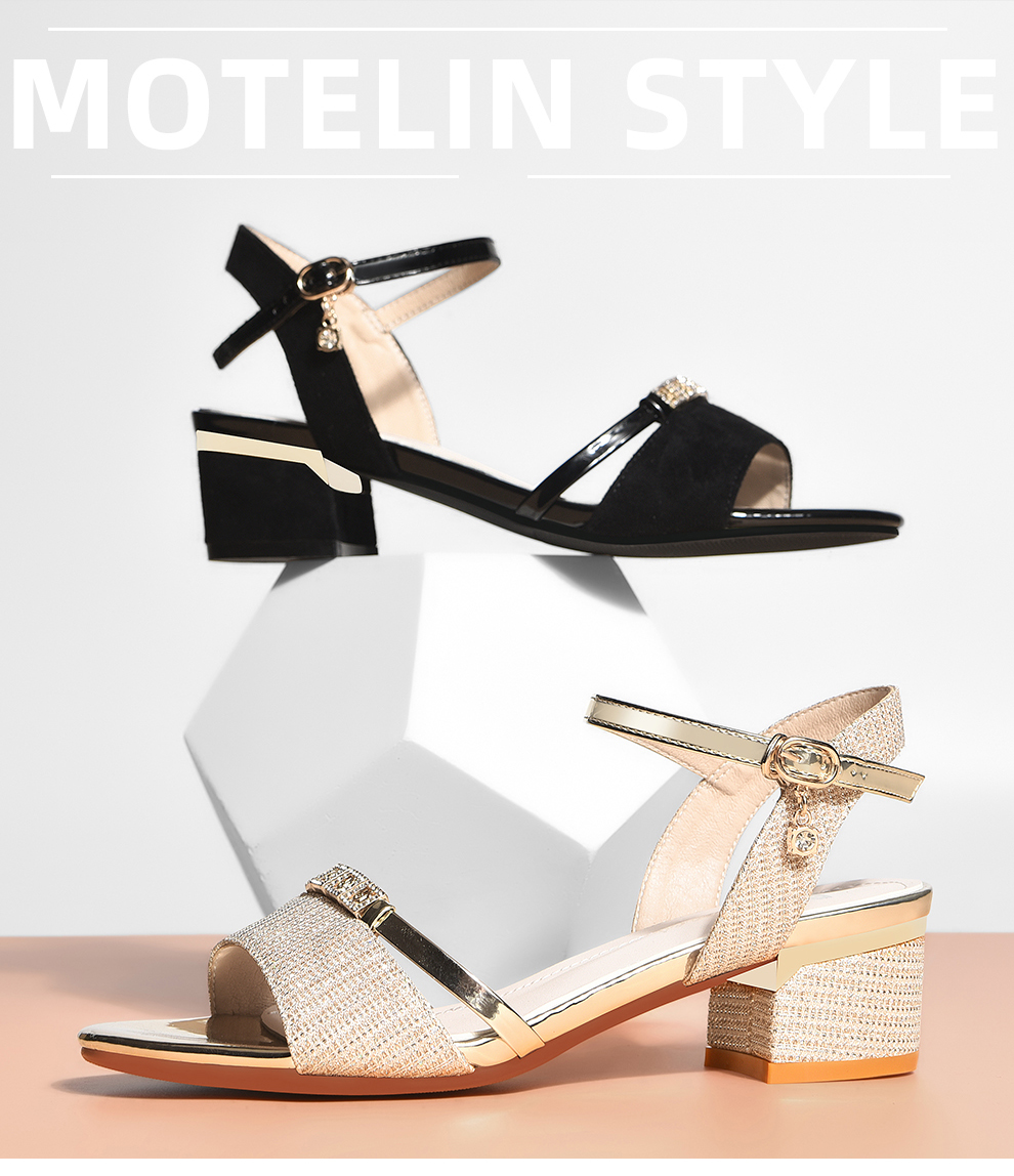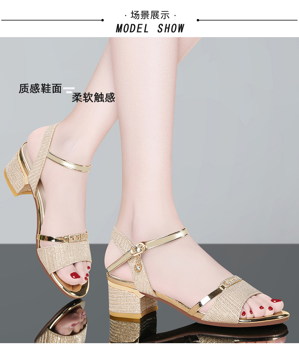 商品名称:AI中跟凉鞋女2024夏季新款女鞋粗跟鱼嘴鞋一字扣带皮凉鞋时装妈妈鞋 金色OYLL98038 37