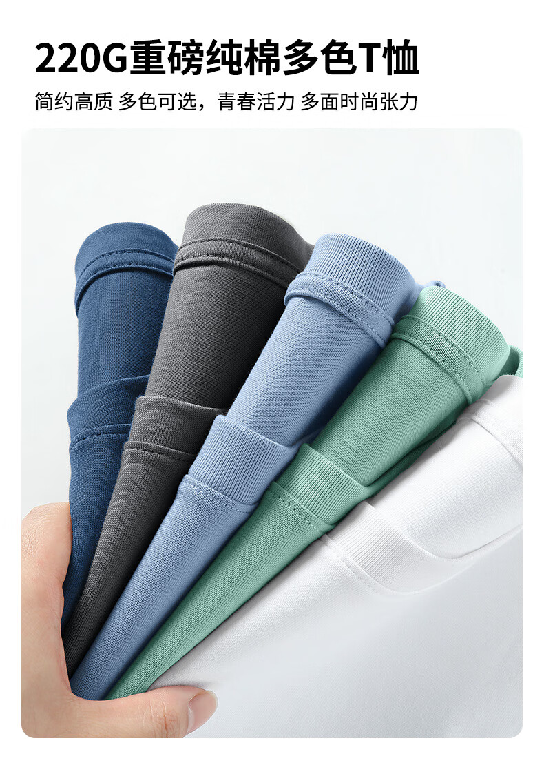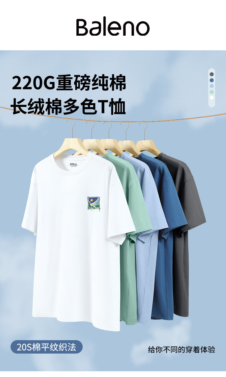 商品名称:班尼路(Baleno)短袖t恤男220G重磅夏季潮流大码透气圆领上衣青少年宽松纯棉短t