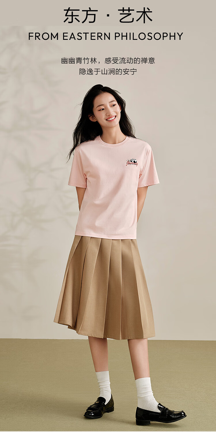 商品名称:森马(Semir)[凉感T]观园吉联名短袖T恤女抗菌宽松2024熊猫夏装潮109324100013