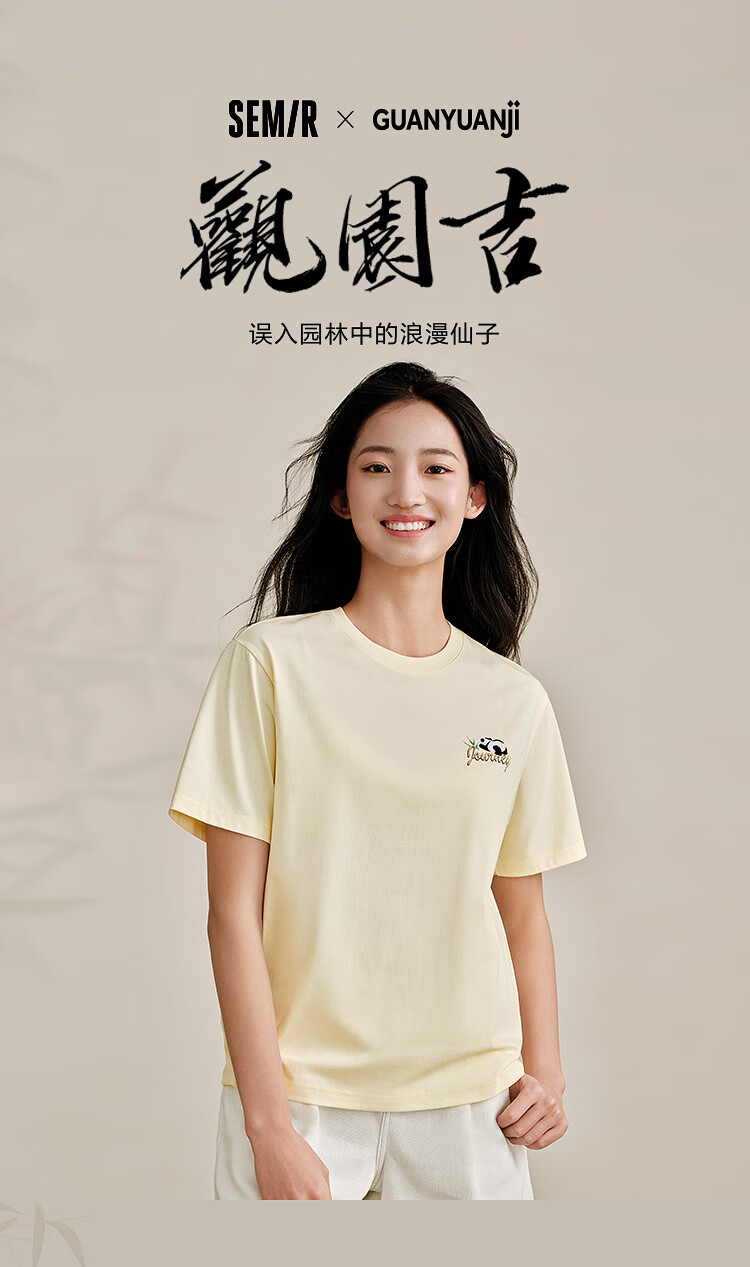 森马(Semir)[凉感T]观园吉联名短袖T恤女抗菌宽松2024熊猫夏装潮109324100013
