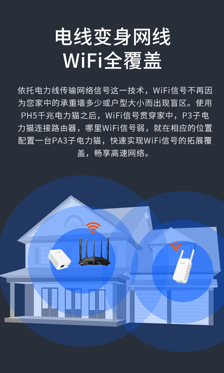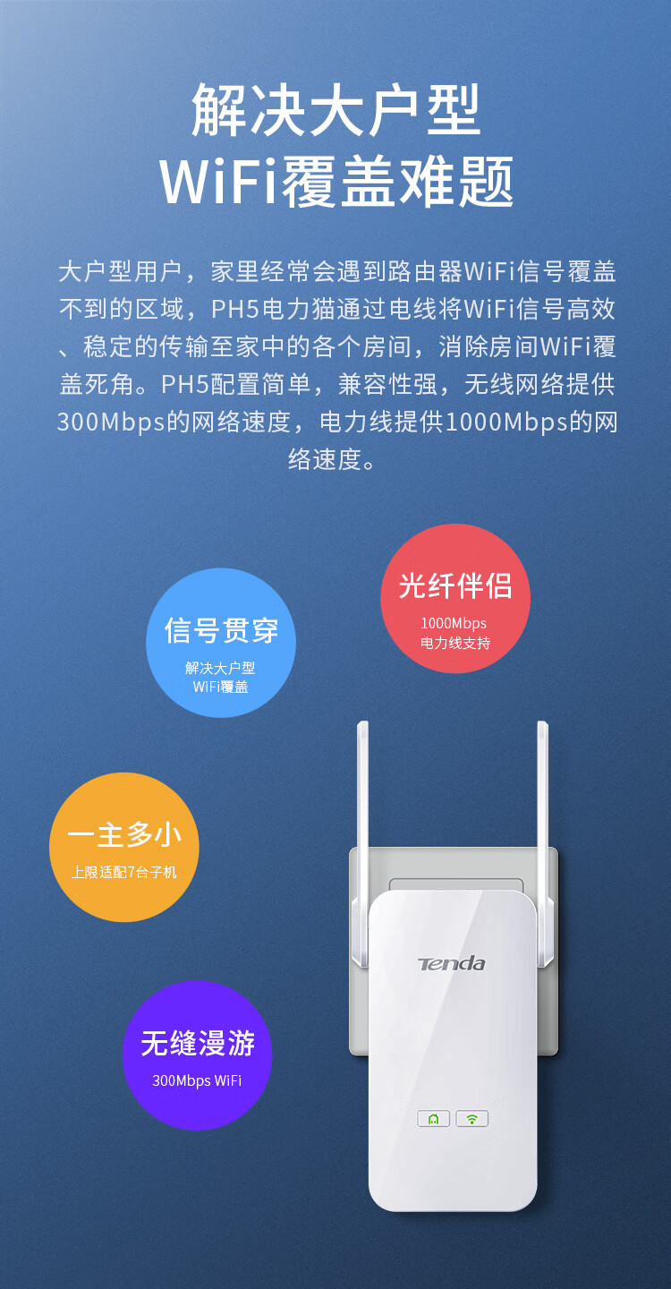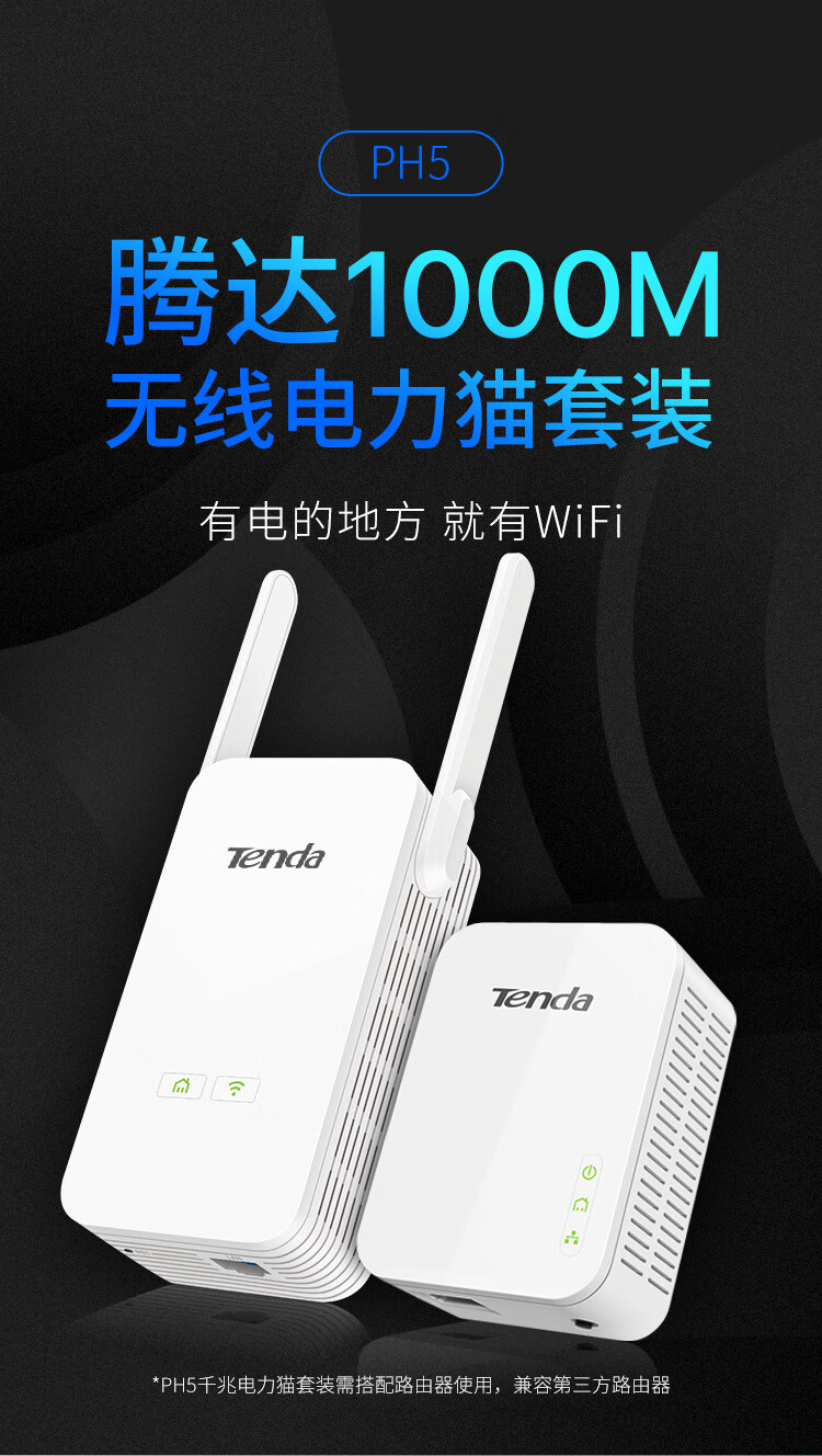 商品名称:Tenda腾达PH5 1000M 千兆无线电力猫穿墙宝套装 WiFi信号放大器 WiFi扩展 搭配无线路由器使用
