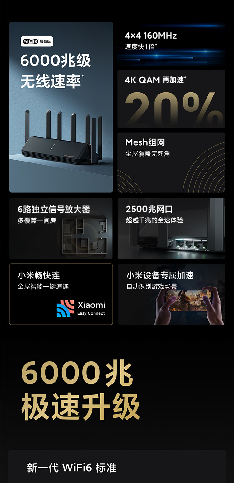 小米(MI) 路由器 AX6000 5G双频WIFI6 6000M速率 无线穿墙千兆 家用智能 电竞路由