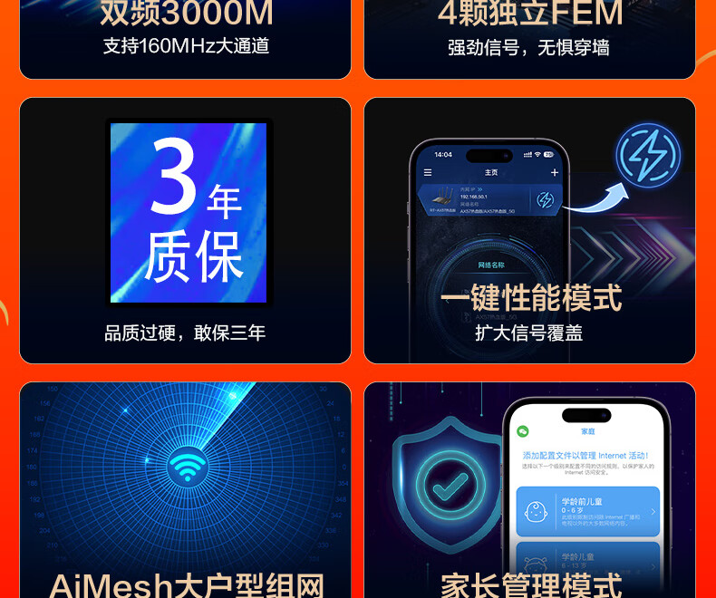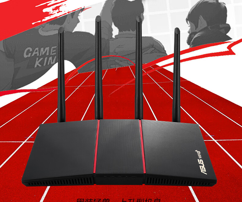商品名称:华硕(ASUS)RT-AX57热血版/WiFi6全千兆电竞路由器/4外置独立fem穿墙/覆盖提升80%/Ai路由器