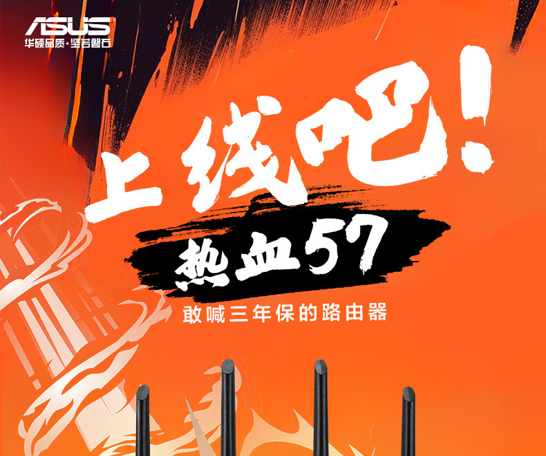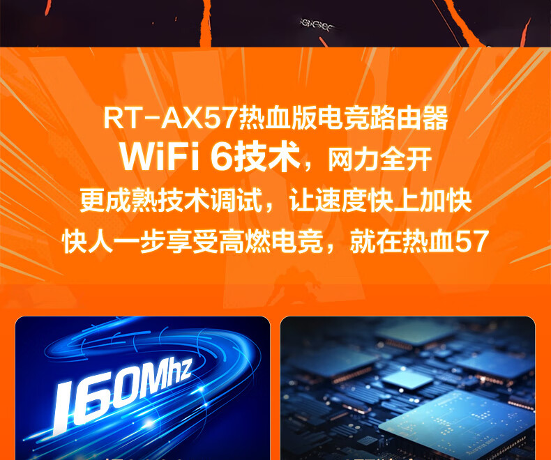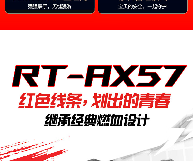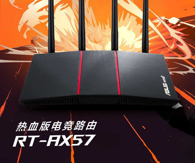 华硕(ASUS)RT-AX57热血版/WiFi6全千兆电竞路由器/4外置独立fem穿墙/覆盖提升80%/Ai路由器