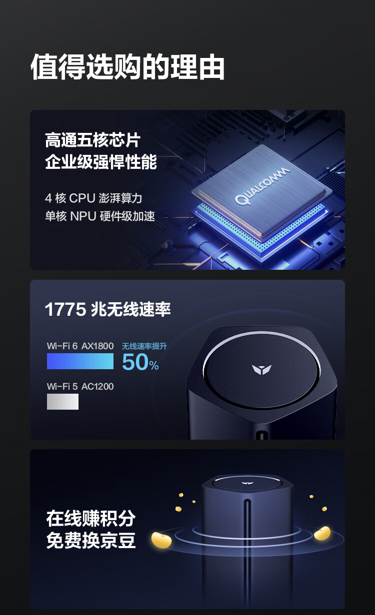 京东云无线宝 能赚京豆的云路由器 AX1800 Pro 128G高通5核处理器 WIFI6 5G双频高速 游戏路由 无线穿墙路由