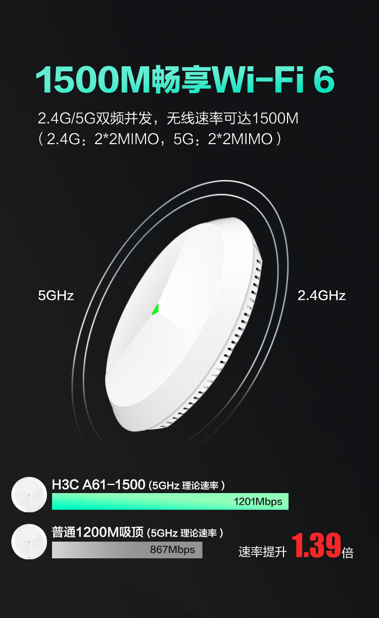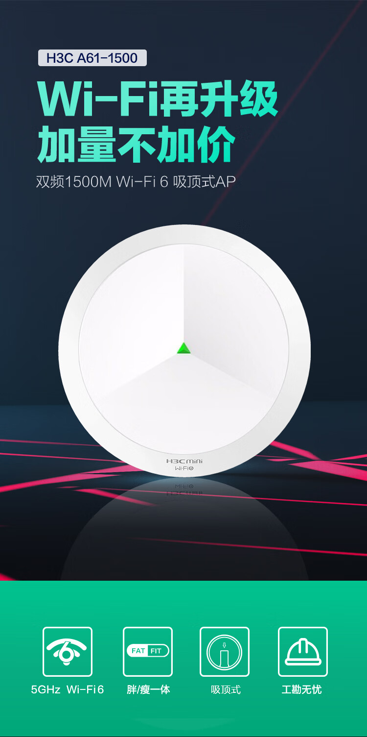 商品名称:华三(H3C)WiFi6吸顶AP 1500M双频千兆 别墅酒店商用WiFi全覆盖 大功率 Mini A61-1500