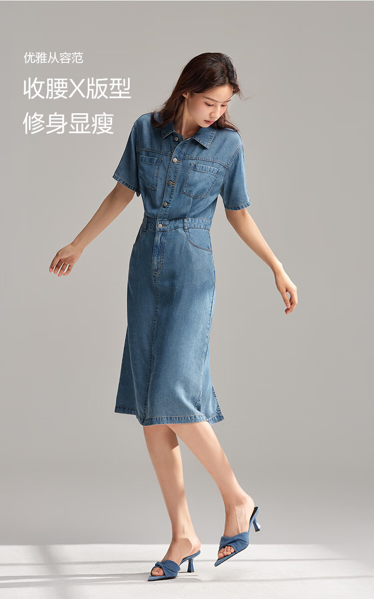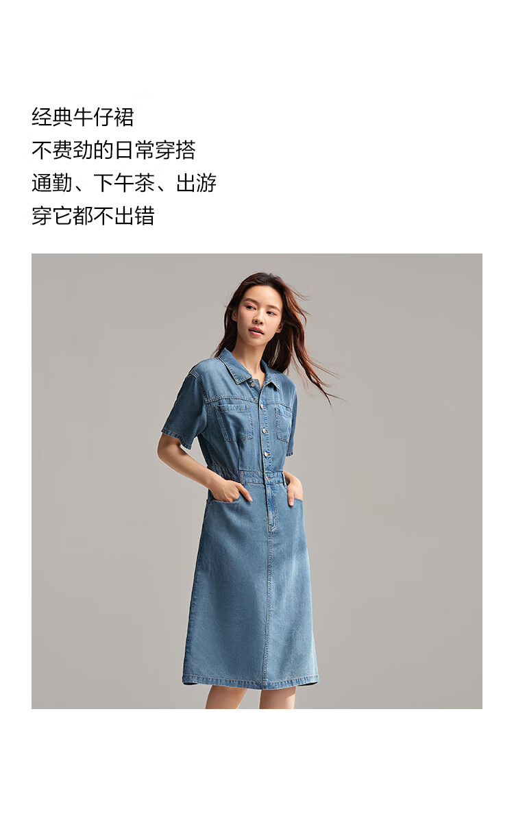 商品名称:森马(Semir)郑合惠子[森柔牛仔]连衣裙女收腰女裙2024年西装裙子