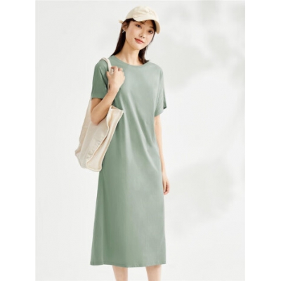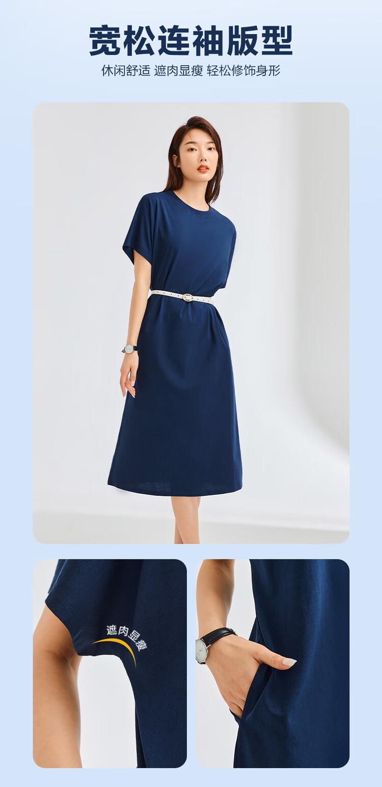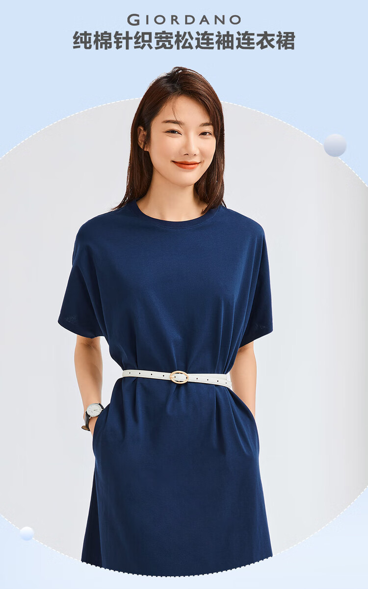 商品名称:佐丹奴连袖裙子女夏季纯棉针织极简风宽松圆领短袖连衣裙05463460