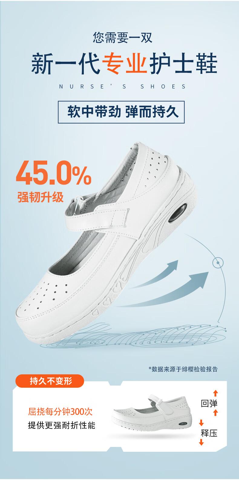 商品名称:绯樱气垫护士鞋女春夏款白色真牛皮舒适镂空魔术贴医护工作鞋2603-39
