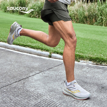 Saucony索康尼全擎22男跑鞋缓震舒适跑步鞋训练运动鞋浅灰黄42
