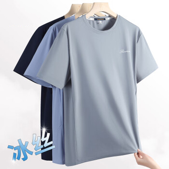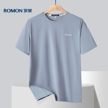 罗蒙(ROMON)冰丝感短袖T恤男士2024夏运动速干衣弹力透气打底衫男01BS灰色XL