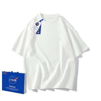 NASA GISS重磅260g纯棉短袖t恤男纯色圆领厚实不透纯白打底衫男女体恤上衣 白色 M体重110-130斤