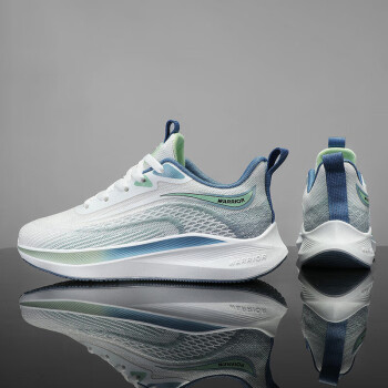 回力(Warrior)运动鞋男舒适轻便跑步鞋透气飞织男鞋 G497C 白/绿 40
