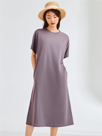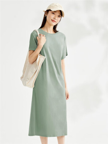 佐丹奴连袖裙子女夏季纯棉针织极简风宽松圆领短袖连衣裙05463460