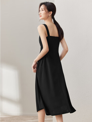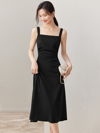 尚都比拉春秋气质方领修身显瘦吊带连衣裙高级感法式小黑裙 黑色 M