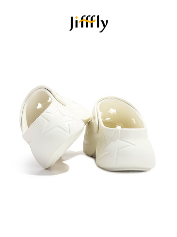 jifffly洞洞鞋女包头星星厚底增高情侣款百搭休闲拖鞋女软弹防滑凉鞋男 米白色 37-38